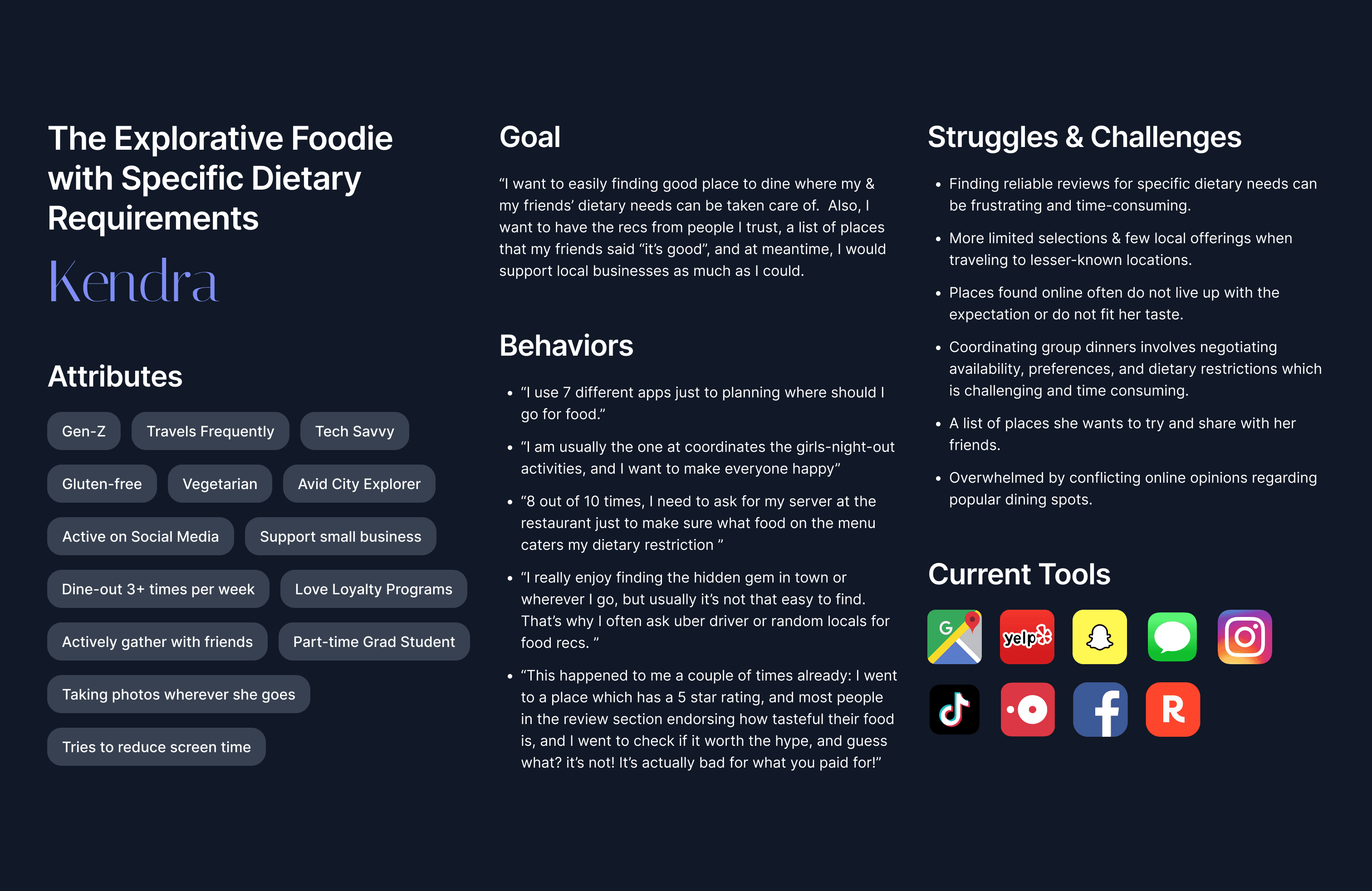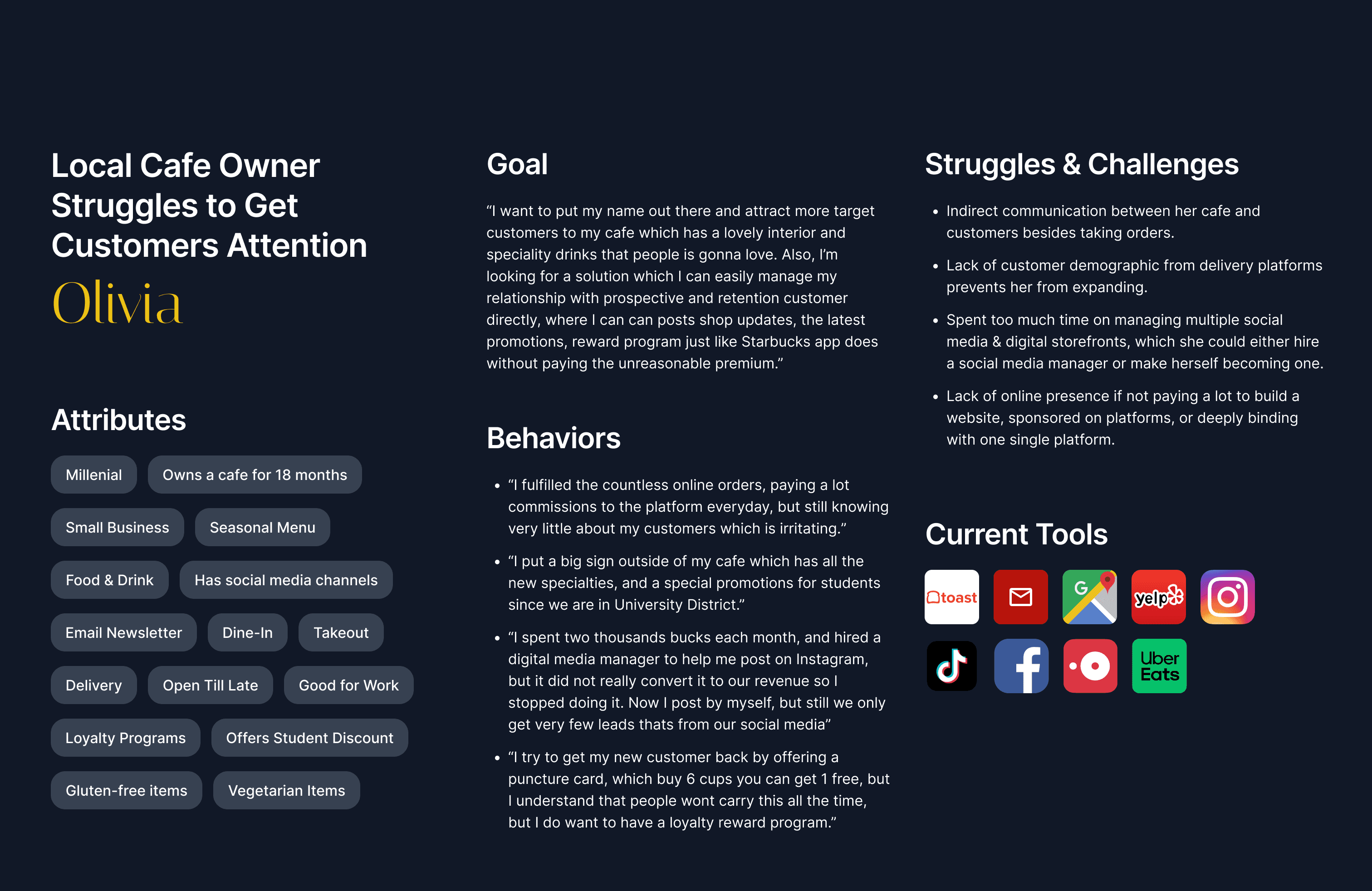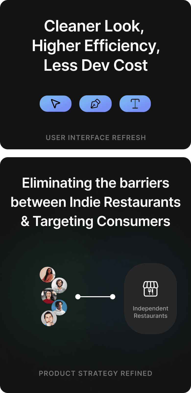This process helped align design decisions with real user behaviors, ensuring that we deliver a seamless, intuitive, and personalized dining experience that caters to both diners and independent restaurants.