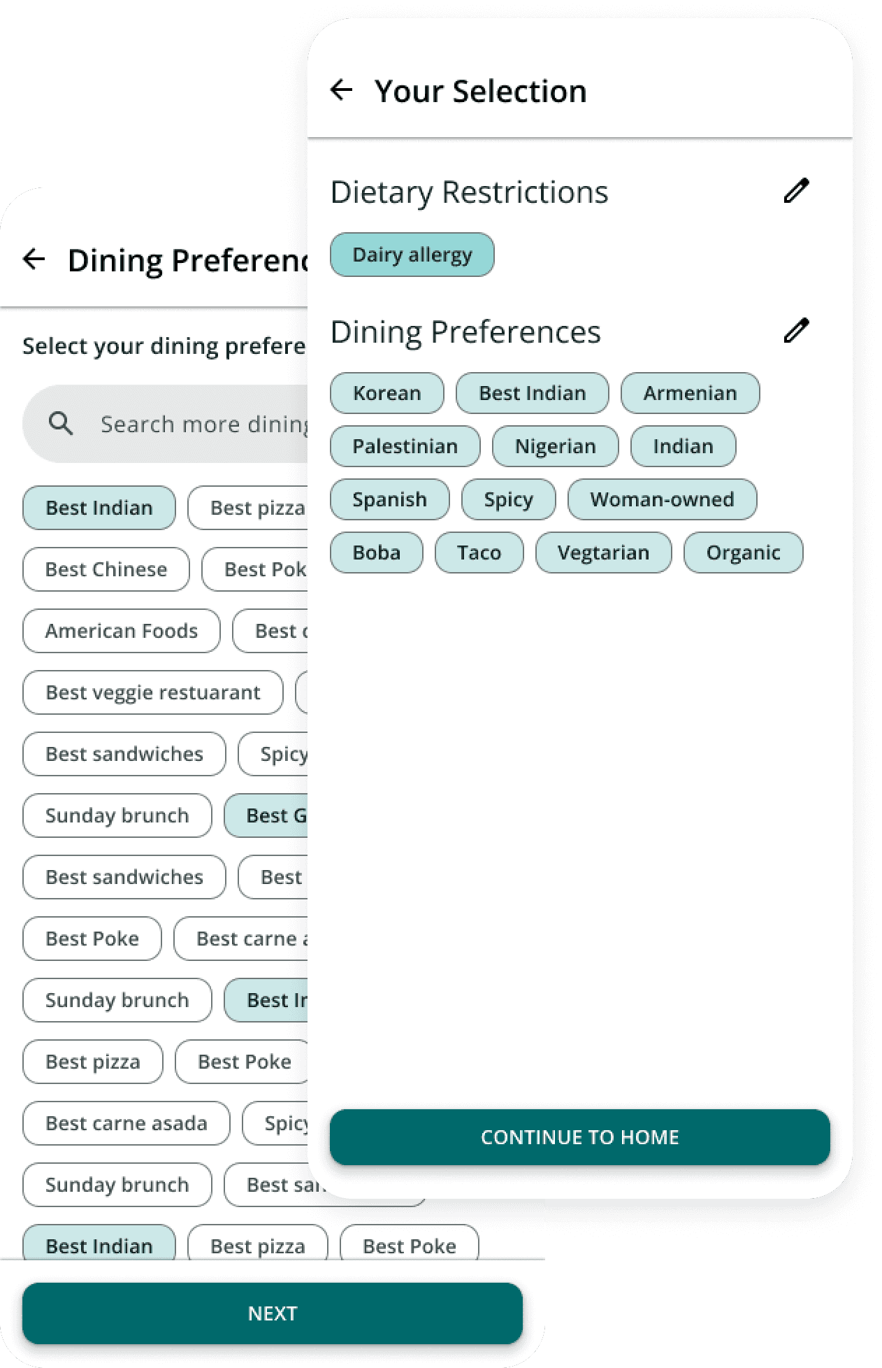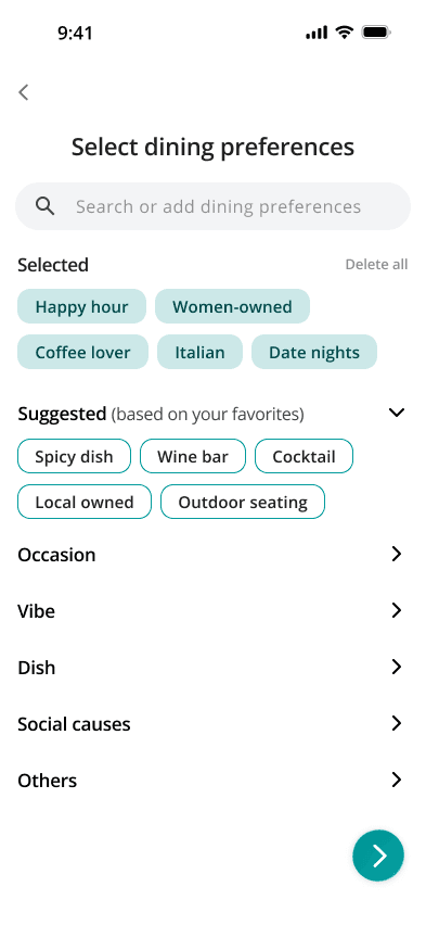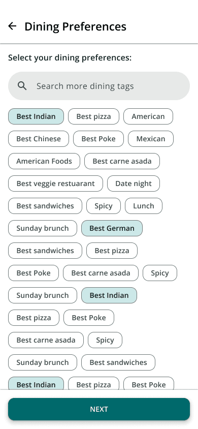 Even motivated users drop off when the UI feels messy. A lack of structure made it too hard to find relevant dining preference tags.
