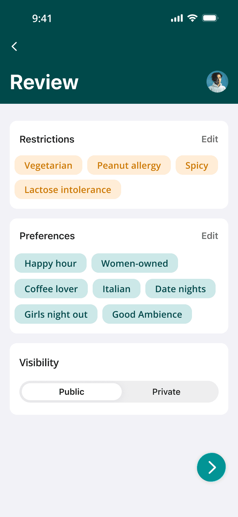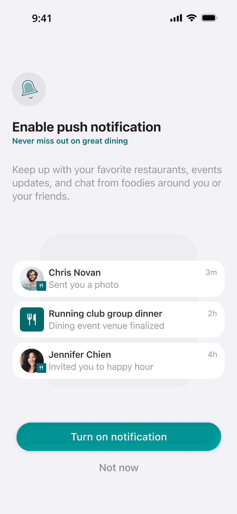ONB 3: Building dining profile & engage when users want to do so