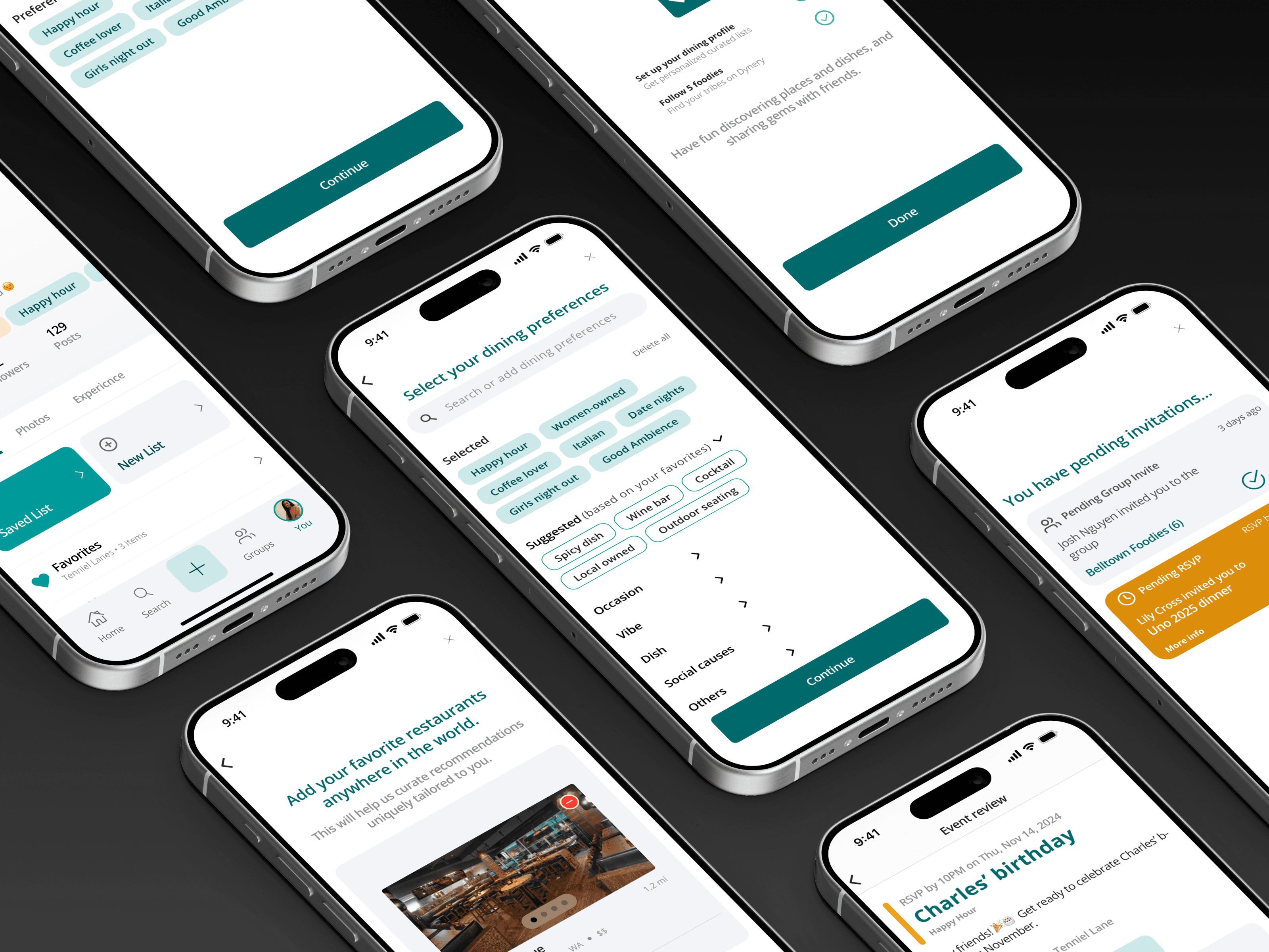 Dave redesigned user onboarding flow for Dynery app, which allows users to sign-up faster and setting up their dining taste profile easier. An overall more intuitive and welcoming experience.